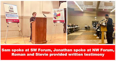 Office of Children Services Transformation Director Kristi Burre and Policy Manager Kari Akins made it possible for participating foster care alumni to fill out testimony slips ahead of time. As a result, 10 foster care alumni were able to share testimony during the Columbus Foster Care Forum. (Eleven, if you count Cloe reading mine, because I was able to take photos, but my voice was gone. I remain deeply grateful to CloƩ Cooper for reading my testimony aloud during the forum and being my voice).